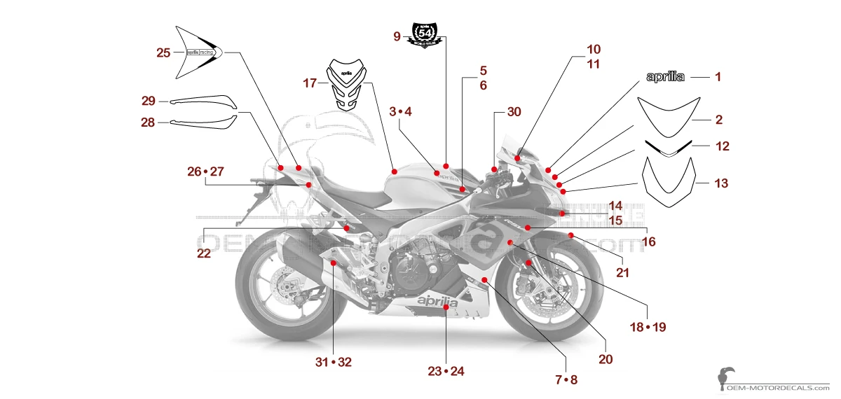 Aufkleber für Aprilia RSV4 1000RR 2016 - Grau • Aprilia OEM-Aufkleber