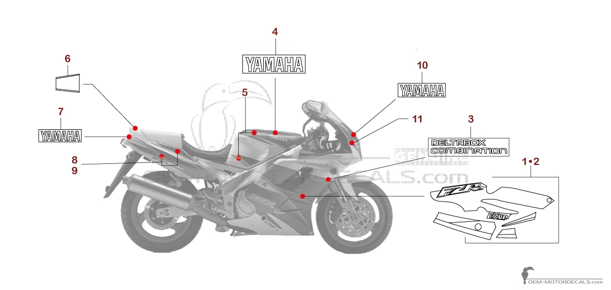 Aufkleber für Yamaha FZR1000 1994 - Weiss • Yamaha OEM-Aufkleber
