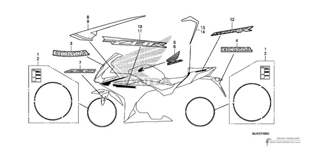 Aufkleber für Honda CBR500R 2016 - Schwarz • Honda OEM-Aufkleber