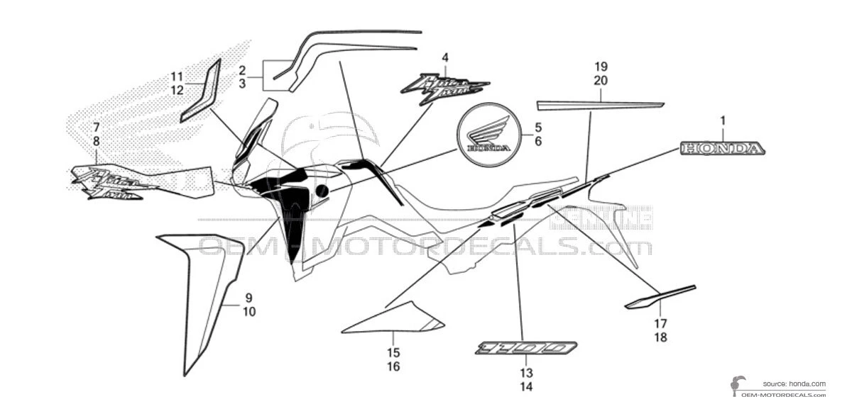 Aufkleber für Honda CRF1100 AFRICA TWIN 2021 - Weiss • Honda OEM-Aufkleber
