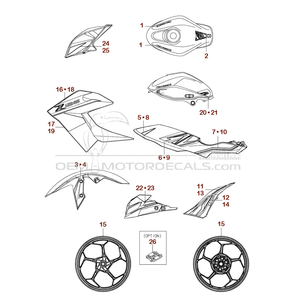 Aufkleber für Kawasaki Z125 2020 - Schwarz Weiß • Kawasaki OEM-Aufkleber