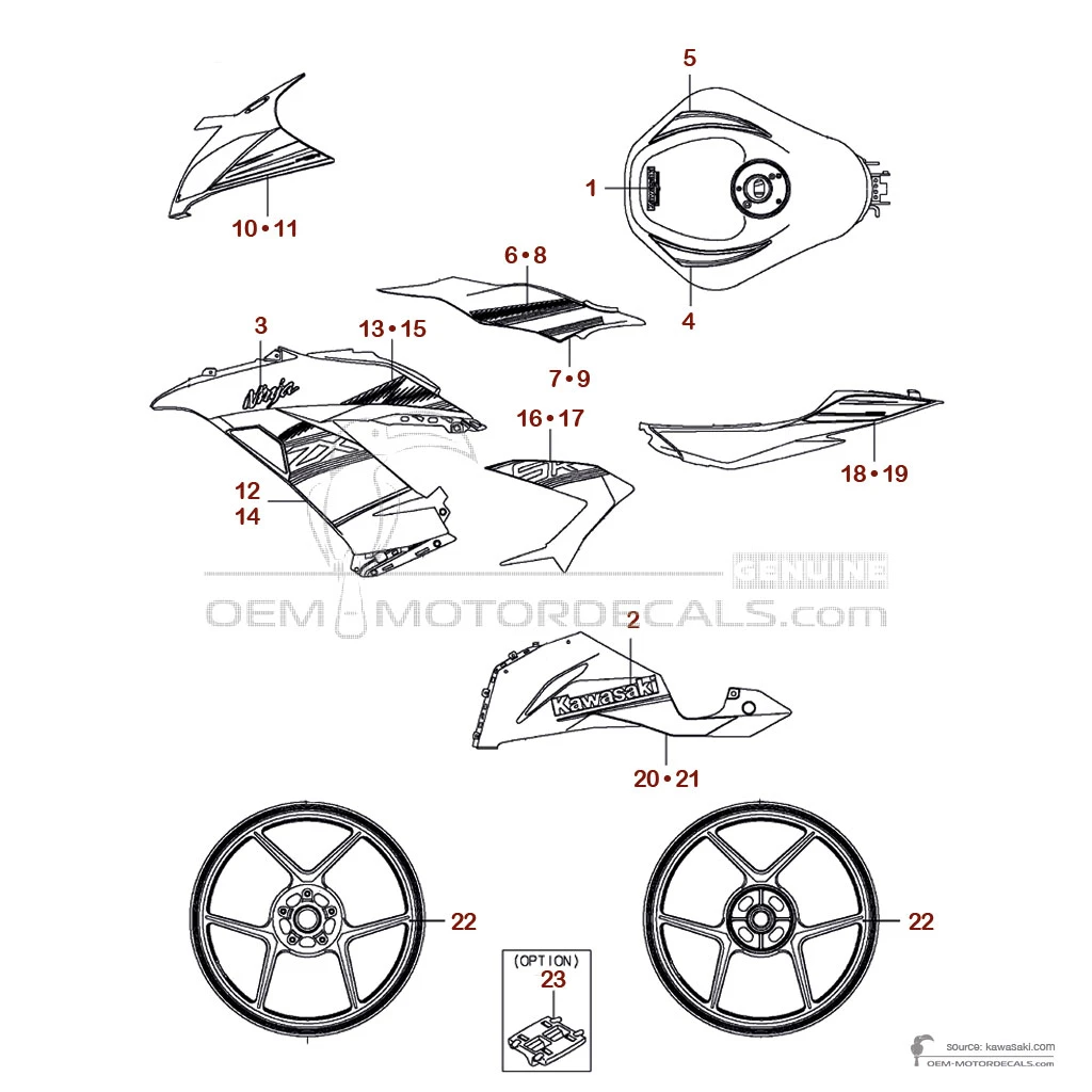 KAWASAKI Rahmenabdeckungsaufkleber, rechte Seite - 560751679 (56075-1679 PATTERN,SIDE COVER,RH,UP) Dies ist ein Original-Ersatzteil von Kawasaki. Original-Aufkleber stellen nicht nur das werkseitige Aussehen des Motorrads wieder her, sondern sparen auch Ihre Zeit und interessanterweise Ihr Geld. Da..