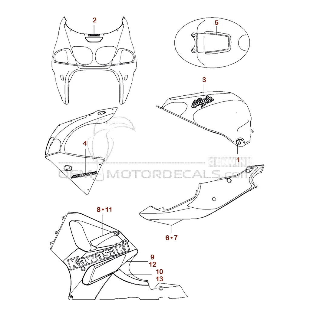 Aufkleber für Kawasaki ZX7R 2001 - Ebony • Kawasaki OEM-Aufkleber