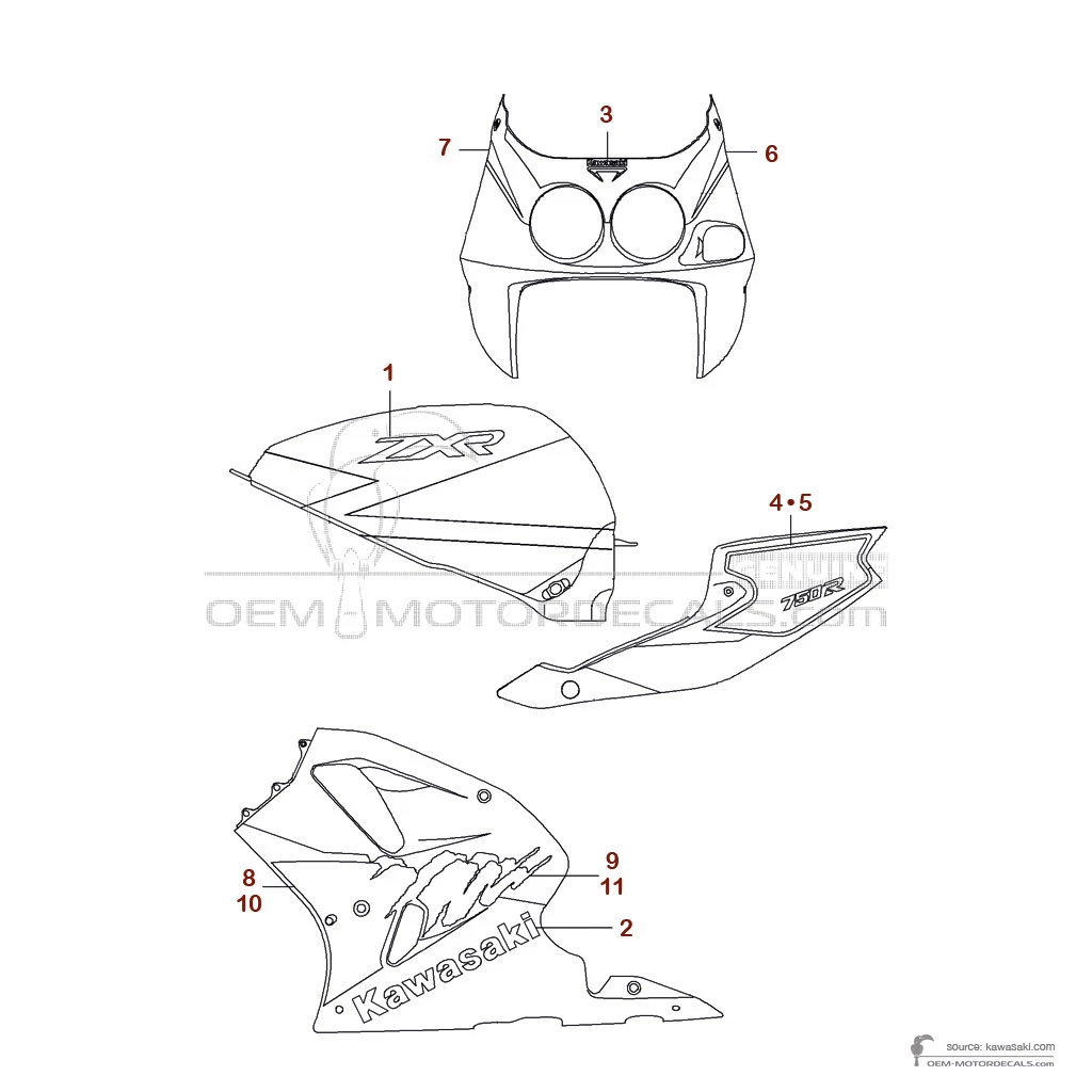 Aufkleber für Kawasaki ZXR750R 1993 - Green • Kawasaki OEM-Aufkleber