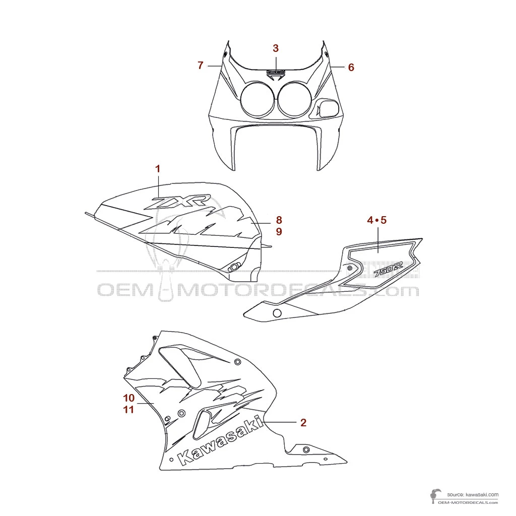 Aufkleber für Kawasaki ZXR750R 1994 - Grün • Kawasaki OEM-Aufkleber