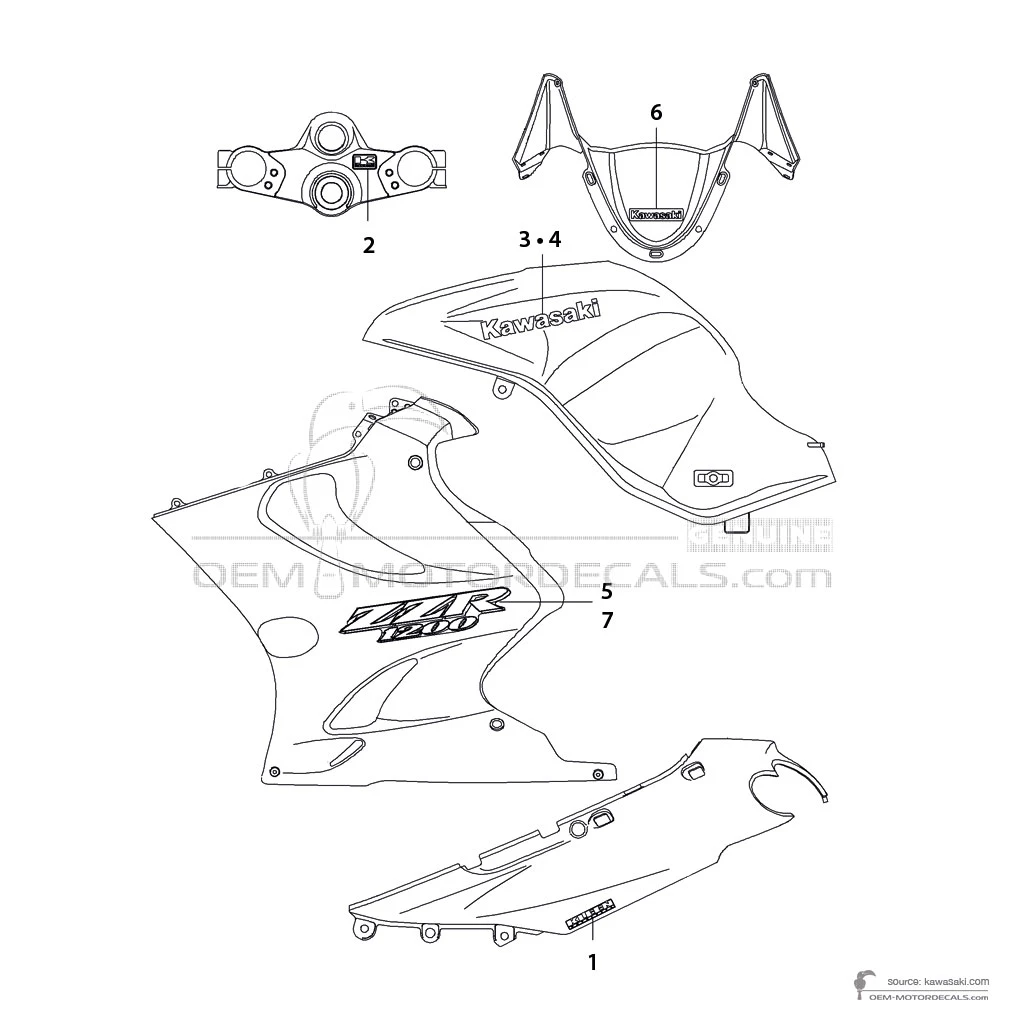 Aufkleber für Kawasaki ZZR1200 2002 - Silber • Kawasaki OEM-Aufkleber