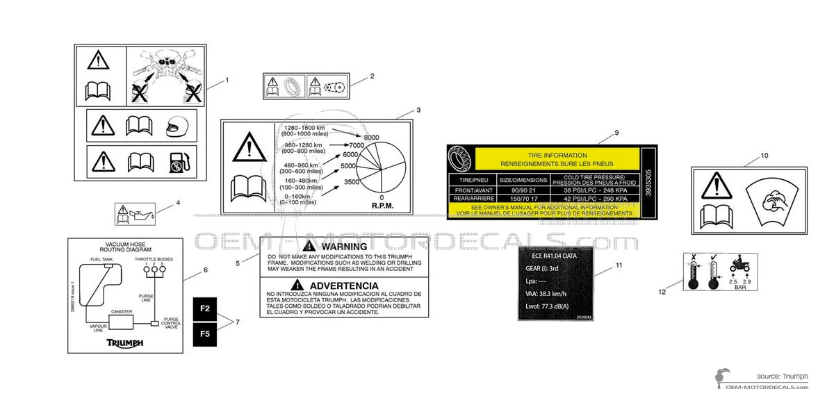 Aufkleber für Triumph TIGER 800 - Vorsichtsetiketten • Triumph OEM-Aufkleber