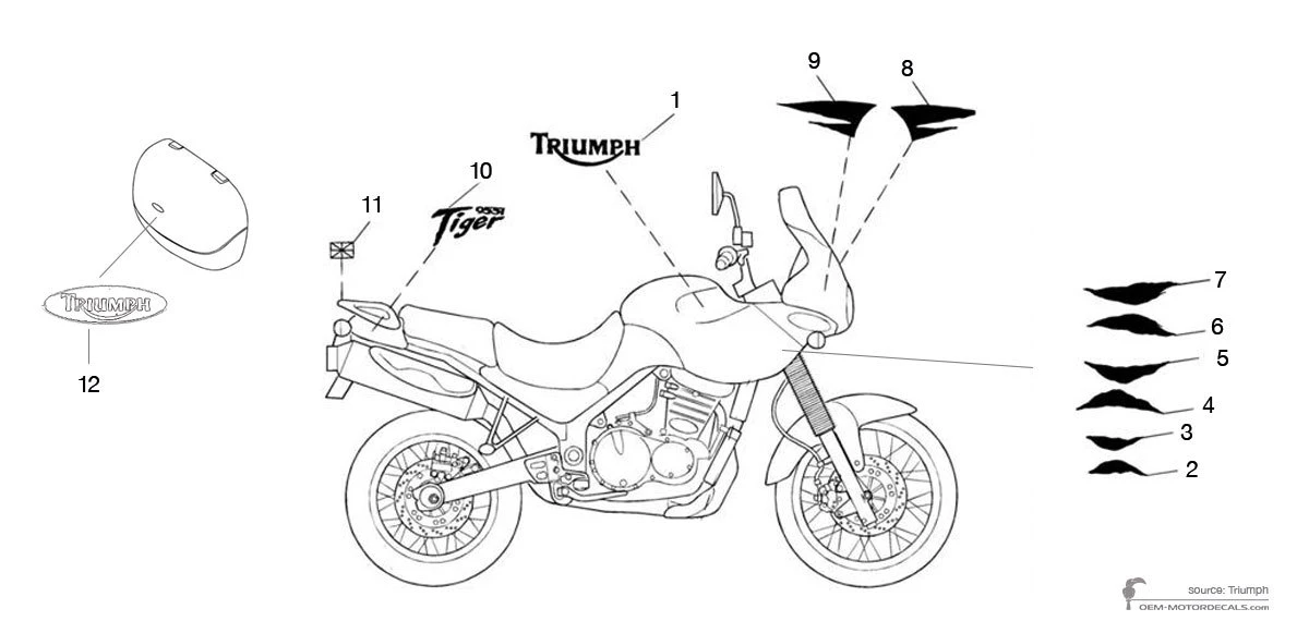 Aufkleber für Triumph TIGER 955i 2003 - Schwarz • Triumph OEM-Aufkleber