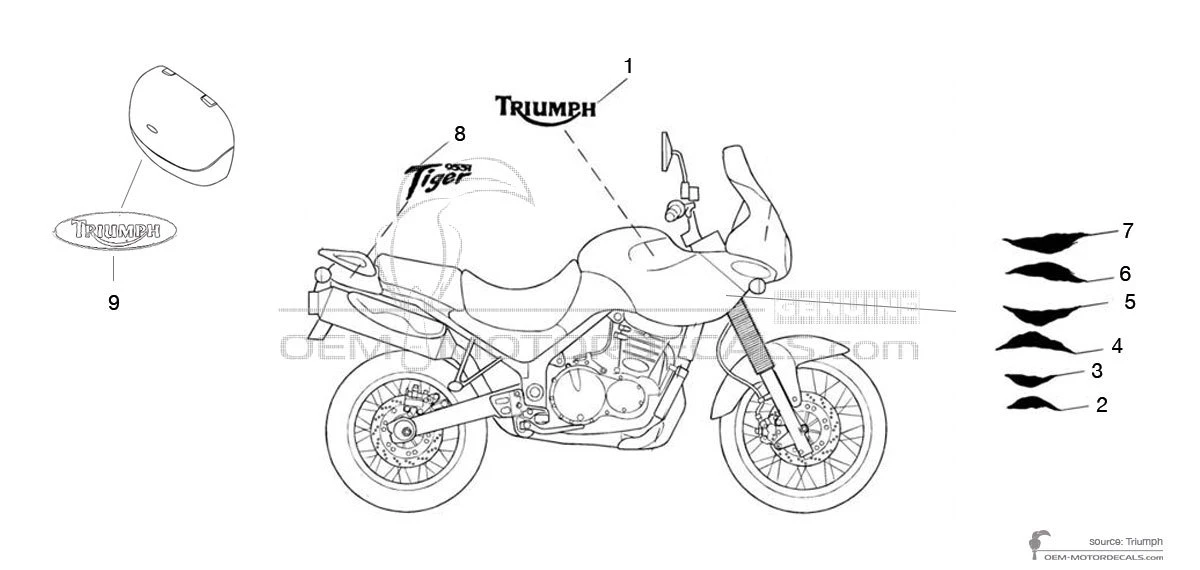 Aufkleber für Triumph TIGER 955i 2005 - Schwarz • Triumph OEM-Aufkleber
