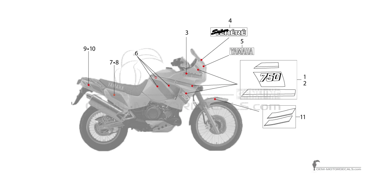 Aufkleber für Yamaha XTZ750 Super Tenere 1990 - Rot • Yamaha OEM-Aufkleber