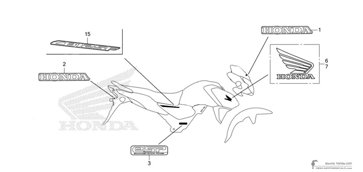 HONDA Front cowling decal - 86101K55600ZA (86101-K55-600ZA MARK, HONDA (65MM) *TYPE1) This is an original spare part made by Honda. Original decals will not only restore the bike's factory look, but also save your time and, interestingly your money. Here's what sets OEM decals apart: ✓ Absolutely..