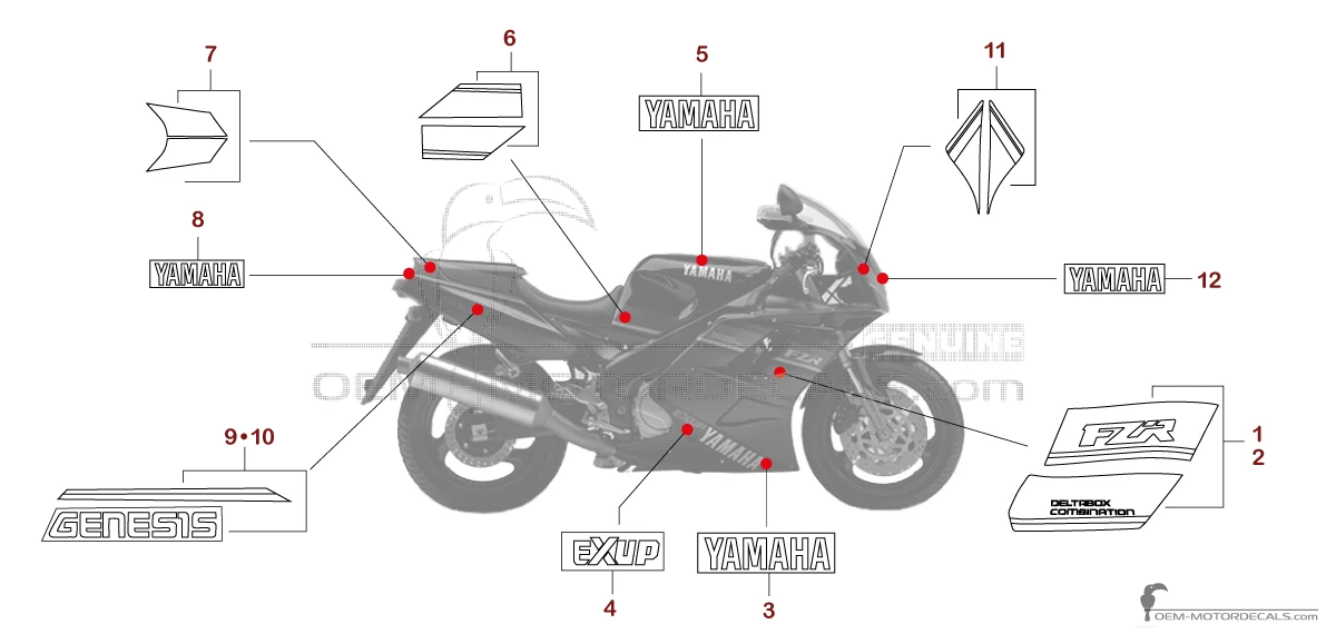 Decals for Yamaha FZR1000 1992 - Black • Yamaha OEM Decals