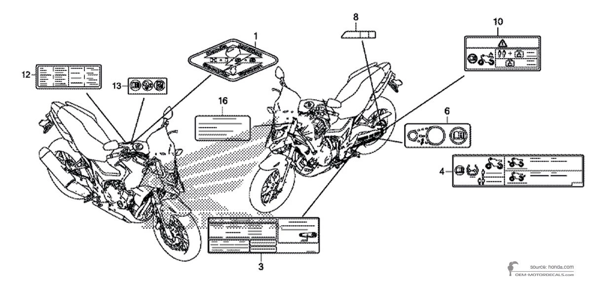 Decals for Honda CB500X - Caution labels • Honda OEM Decals