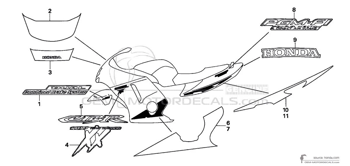 Decals for Honda CBR1100XX SUPER BLACKBIRD 2005 - Silver • Honda OEM Decals
