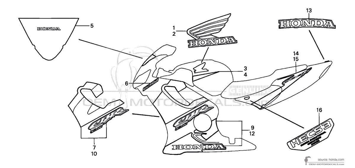 Decals for Honda CBR600F HURRICANE 2001 - Red • Honda OEM Decals