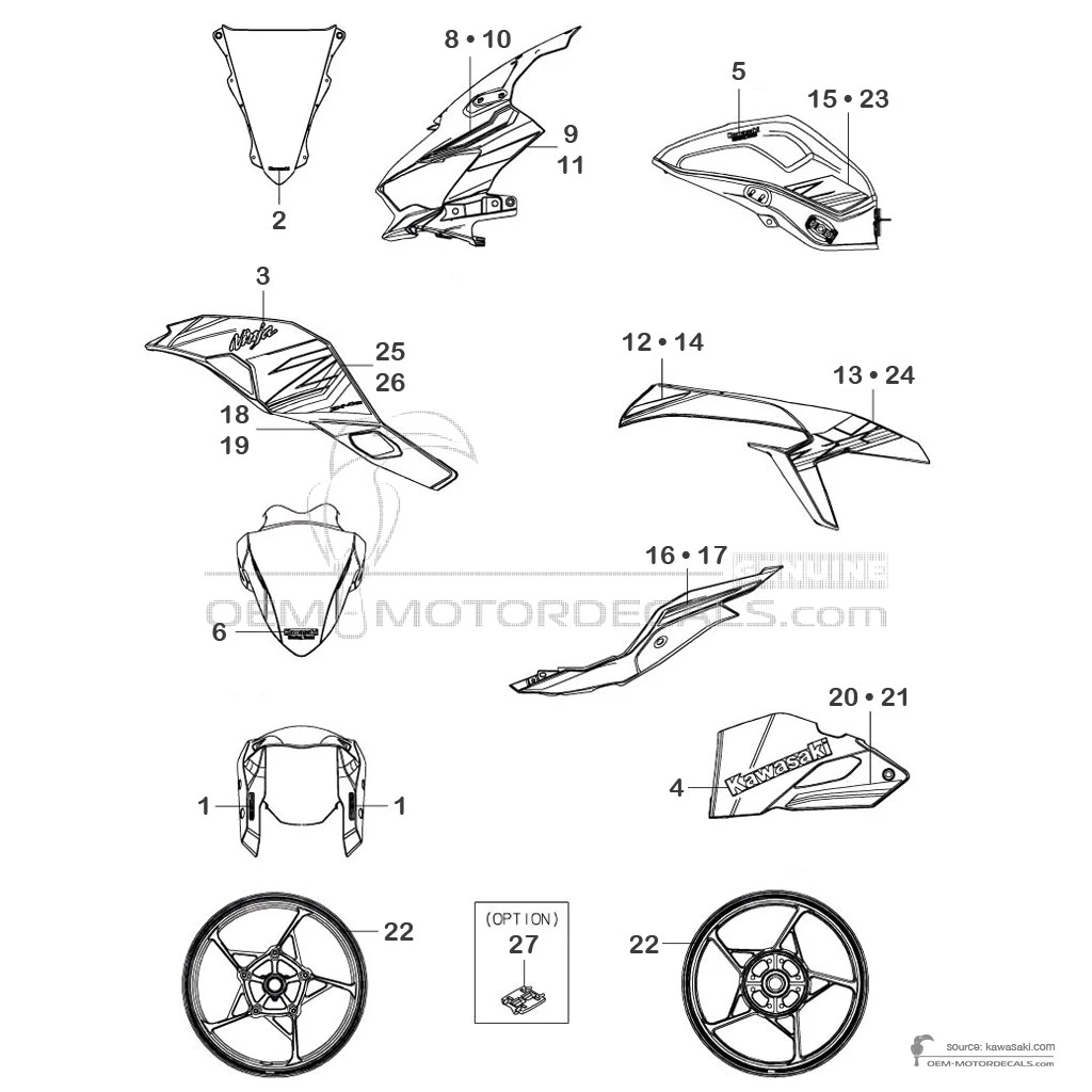 KAWASAKI Front fender decal - 560520784 (56052-0784 MARK,FR FENDER) This is an original spare part made by Kawasaki. Original decals will not only restore the bike's factory look, but also save your time and, interestingly your money. Here's what sets OEM decals apart: ✓ Absolutely no difference ..