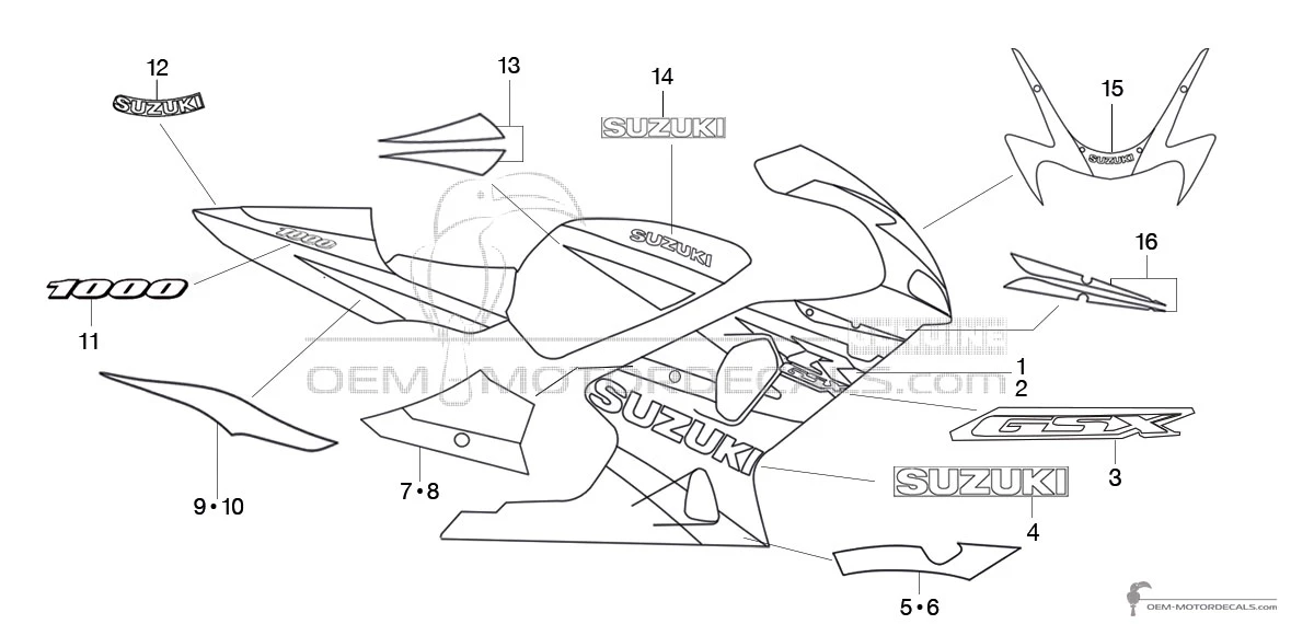 Decals for Suzuki GSXR1000 2002 - Red • Suzuki OEM Decals