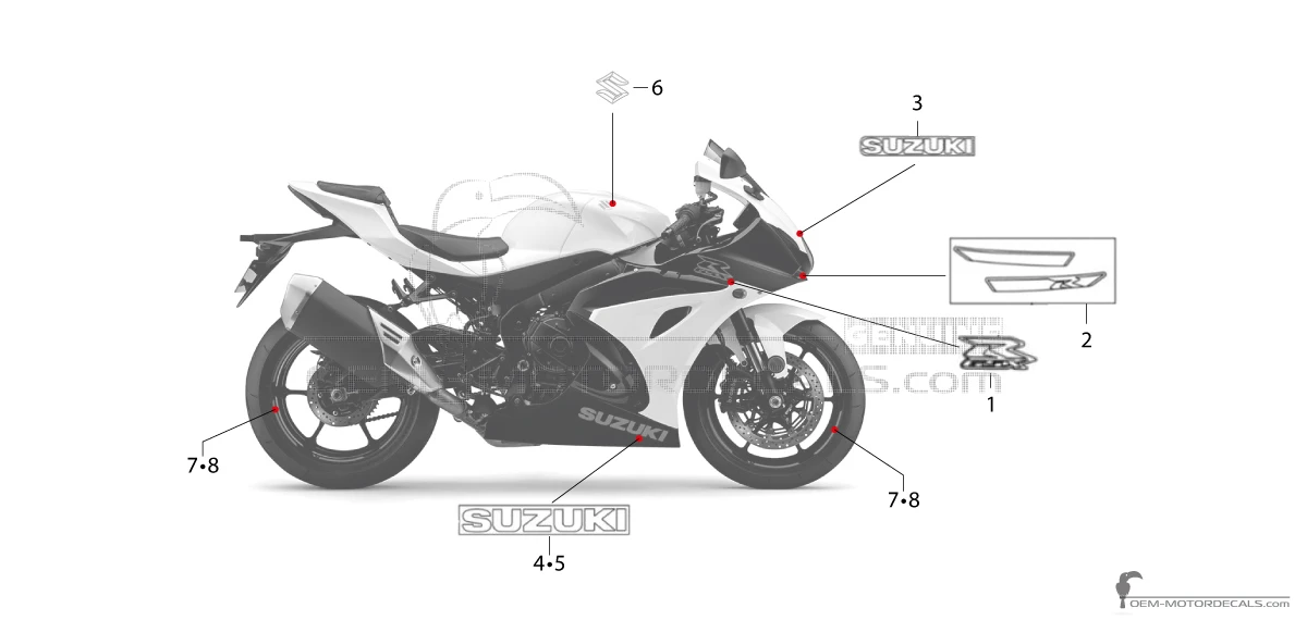 Decals for Suzuki GSXR1000 2020 - White • Suzuki OEM Decals