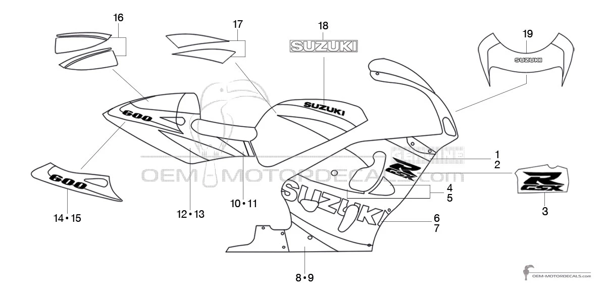 SUZUKI Side cowling decals set, right side - 6818034E600JW (68180-34E60-0JW TAPE SET,COWL) This is an original spare part made by Suzuki. Original decals will not only restore the bike's factory look, but also save your time and, interestingly your money. Here's what sets OEM decals apart: ✓ Abso..