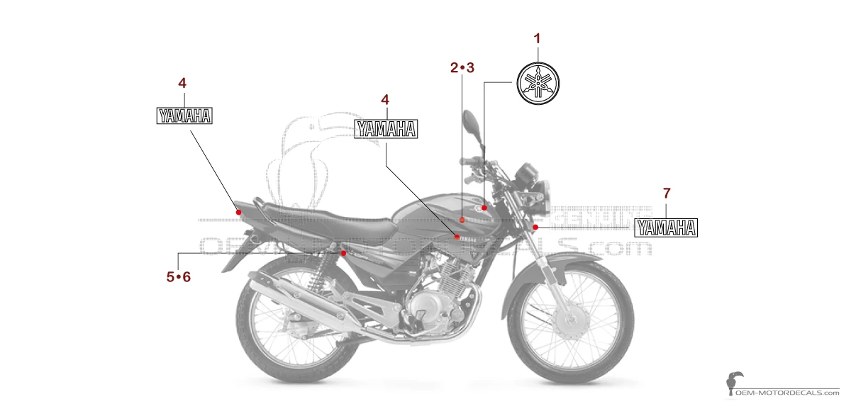 Decals for Yamaha YBR125E 2019 - Red • Yamaha OEM Decals
