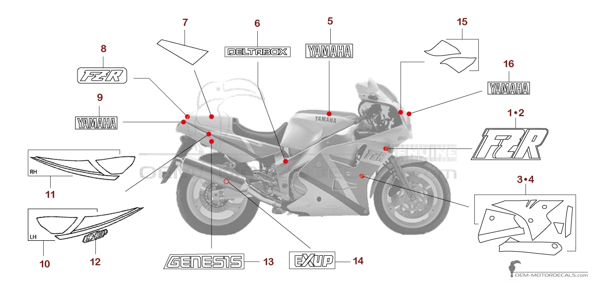 Pegatinas para Yamaha FZR1000 1990 - Blanco • Yamaha Pegatinas OEM