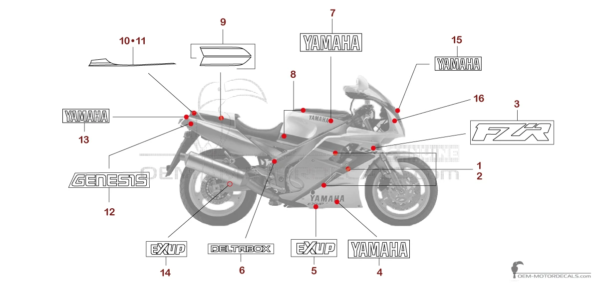 Pegatinas para Yamaha FZR1000 1991 - Blanco • Yamaha Pegatinas OEM