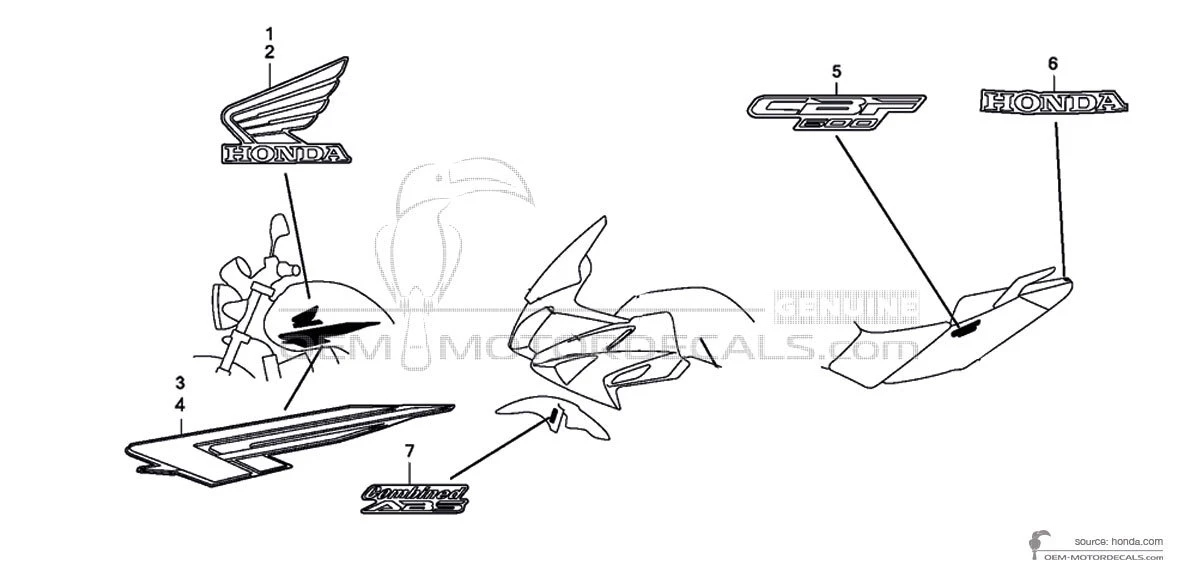 HONDA Pegatina para guardabarros delantero - 61110MFAD10ZC (61110-MFA-D10ZC MARK (COMBINED ABS) ) Esta es una pieza de repuesto original fabricada por Honda. Las calcomanías originales no solo restauran el aspecto de fábrica de la bicicleta, sino que también ahorran tiempo y, curiosamente, dinero...