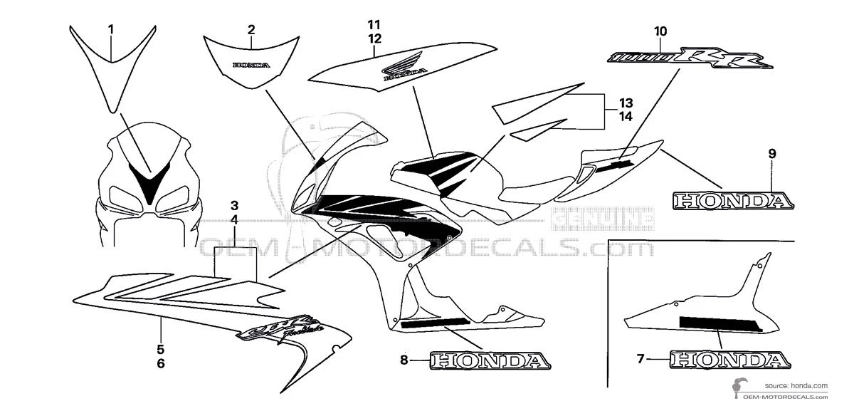 Pegatinas para Honda CBR1000RR FIREBLADE 2007 - Negro • Honda Pegatinas OEM