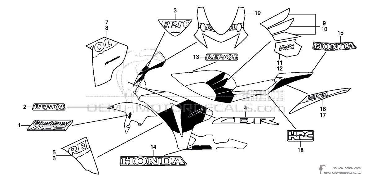 HONDA Emblema para panel lateral - 64811MFL000ZA (64811-MFL-000ZA MARK (CBR) *TYPE1*) Esta es una pieza de repuesto original fabricada por Honda. Las calcomanías originales no solo restauran el aspecto de fábrica de la bicicleta, sino que también ahorran tiempo y, curiosamente, dinero. Esto es lo ..