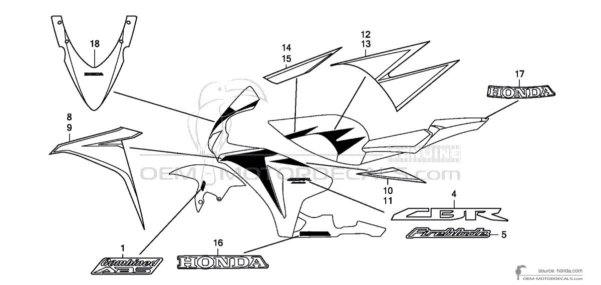 Pegatinas para Honda CBR1000RR FIREBLADE 2010 - Negro Blanco • Honda Pegatinas OEM