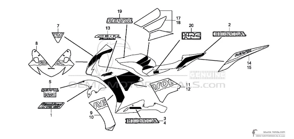 HONDA Pegatina de la cubierta del marco - 86834MGPM30ZA (86834-MGP-M30ZA MARK, HRC (80MM) *TYPE1*) Esta es una pieza de repuesto original fabricada por Honda. Las calcomanías originales no solo restauran el aspecto de fábrica de la bicicleta, sino que también ahorran tiempo y, curiosamente, dinero..