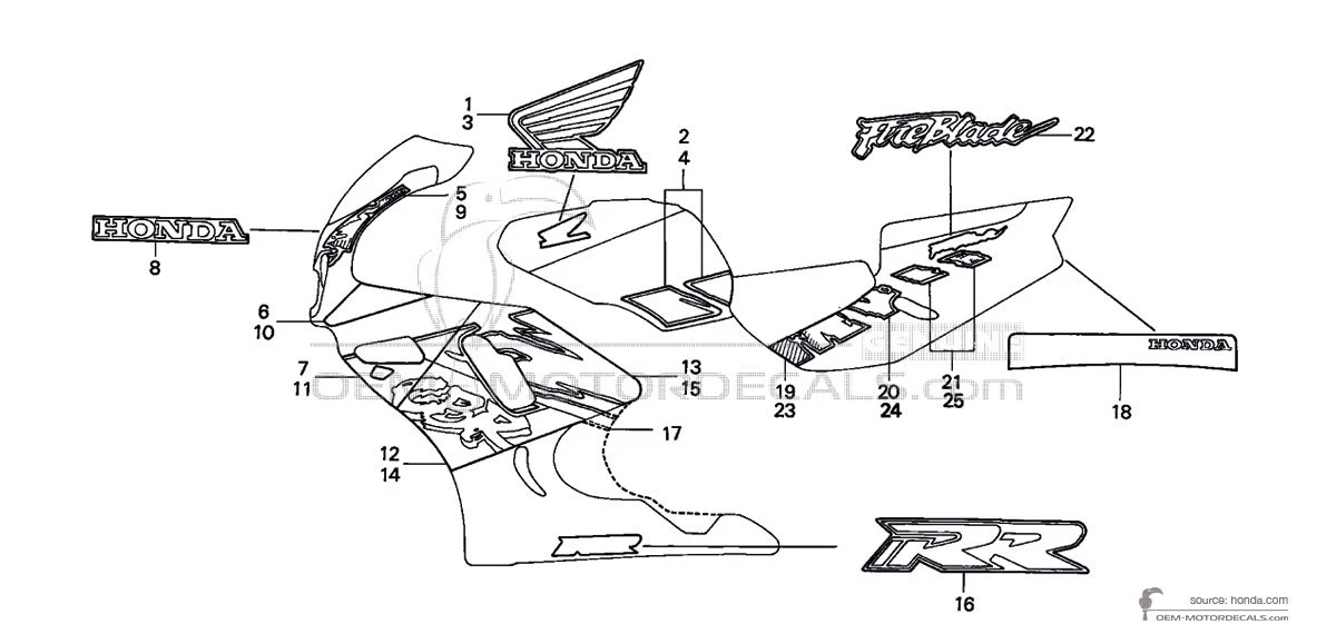 Pegatinas para Honda CBR900RR 1992 - Negro • Honda Pegatinas OEM