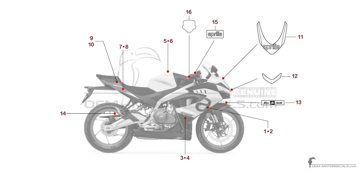 Pegatinas para Aprilia RS457 2024 - White • Aprilia Pegatinas OEM