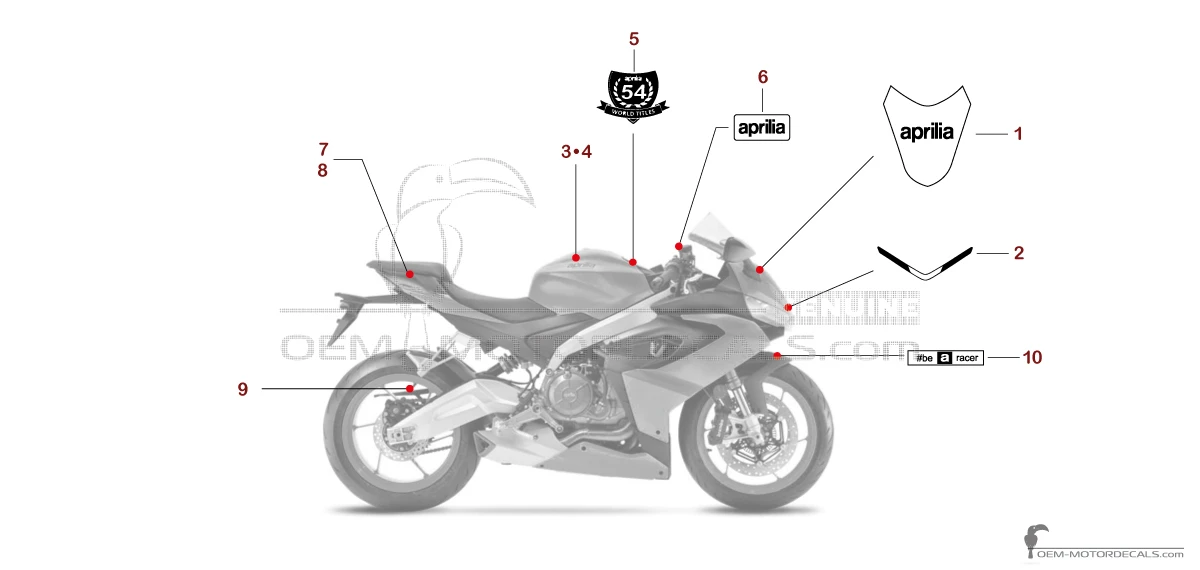 APRILIA Pegatina colin, lado derecho - 2H004329 ( STICKER) Esta es una pieza de repuesto original fabricada por Aprilia. Las calcomanías originales no solo restauran el aspecto de fábrica de la bicicleta, sino que también ahorran tiempo y, curiosamente, dinero. Esto es lo que distingue a las calco..