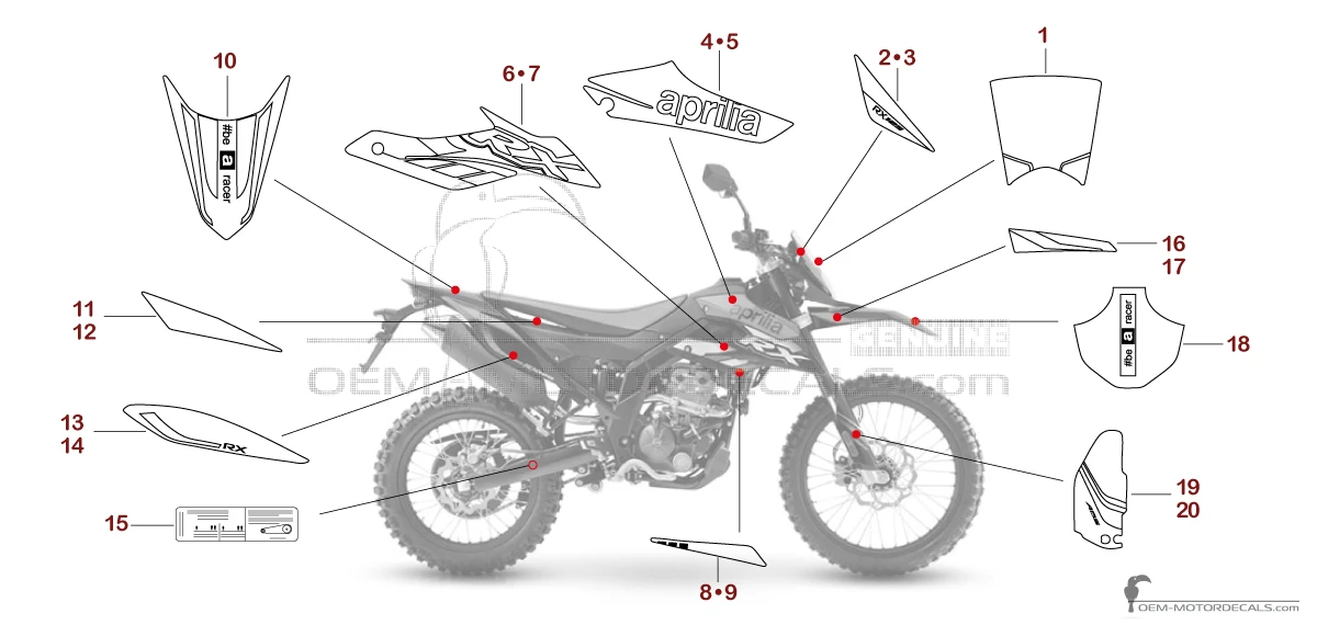 Pegatinas para Aprilia RX125 2020 - Rojo • Aprilia Pegatinas OEM