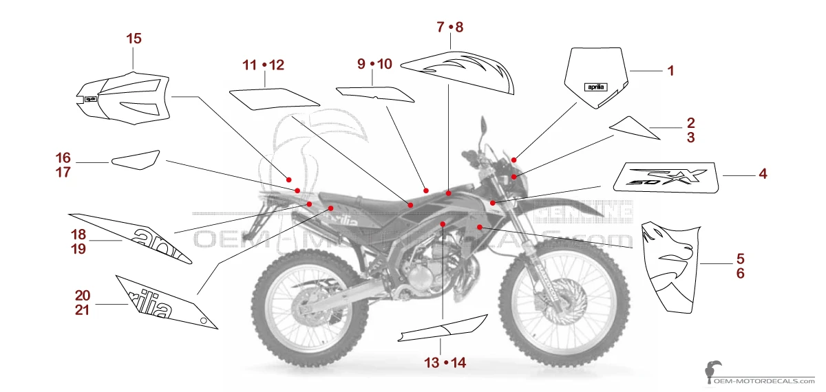 Pegatinas para Aprilia RX50 2006 - Rojo • Aprilia Pegatinas OEM