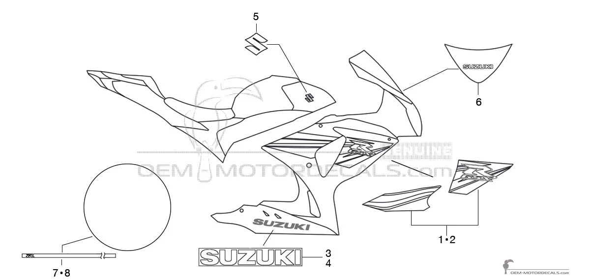 SUZUKI Juego de pegatinas para panel lateral , lado izquierdo - 6869047H30ASC (68690-47H30-ASC TAPE SET, SIDE COWLING, L) Esta es una pieza de repuesto original fabricada por Suzuki. Las calcomanías originales no solo restauran el aspecto de fábrica de la bicicleta, sino que también ahorran tiempo..