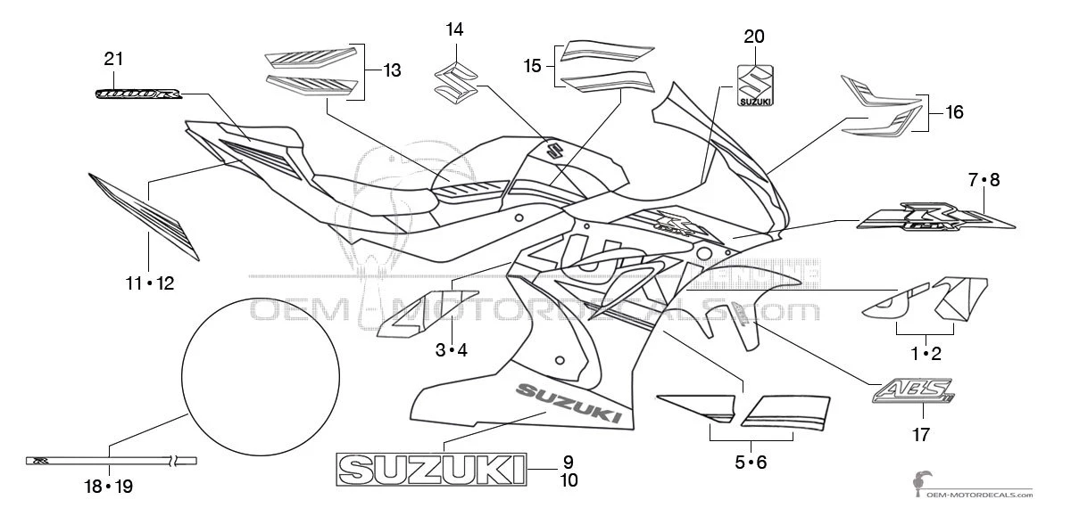 Pegatinas para Suzuki GSXR1000R 2017 - Azul • Suzuki Pegatinas OEM
