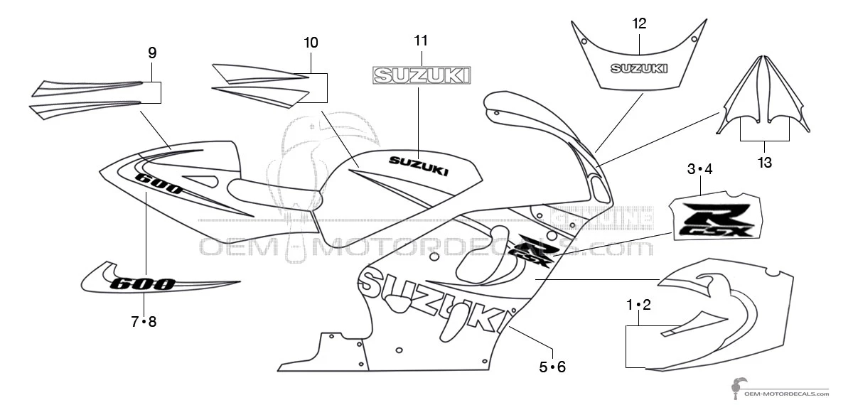 Pegatinas para Suzuki GSXR600 1999 - Negro • Suzuki Pegatinas OEM