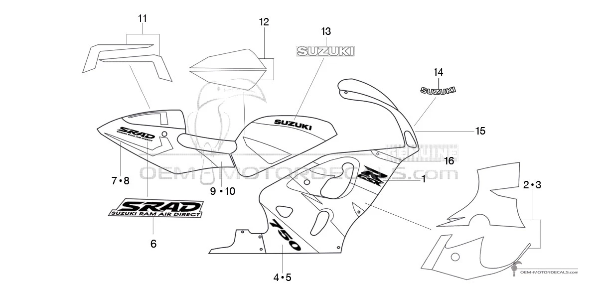 Pegatinas para Suzuki GSXR750 1997 - Plata • Suzuki Pegatinas OEM