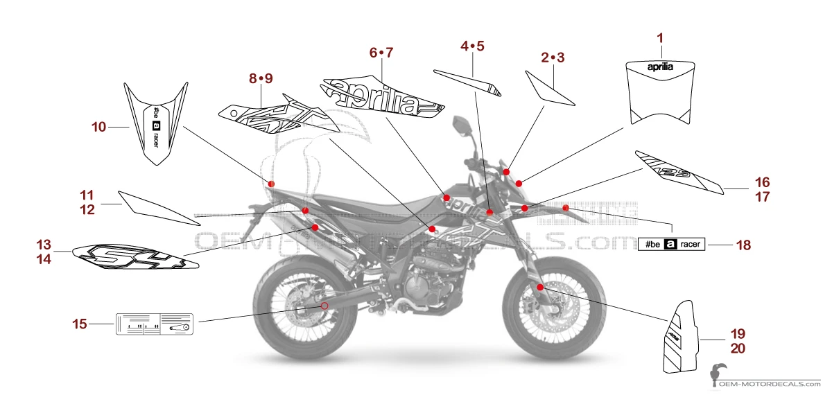Pegatinas para Aprilia SX125 2022 - Rojo • Aprilia Pegatinas OEM