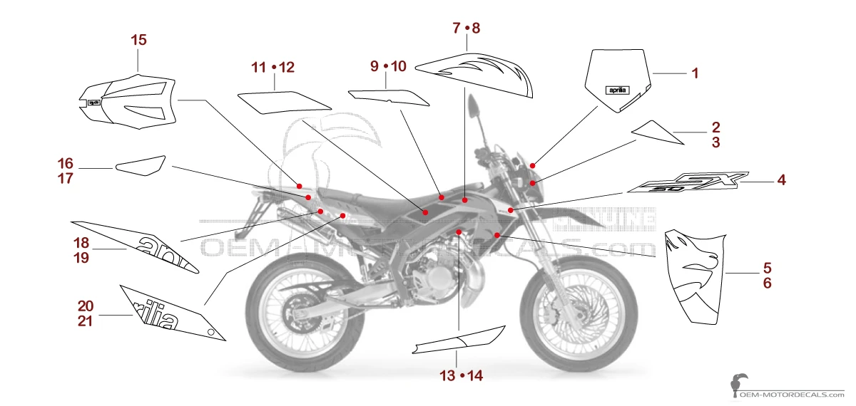 Pegatinas para Aprilia SX50 2006 - Rojo • Aprilia Pegatinas OEM