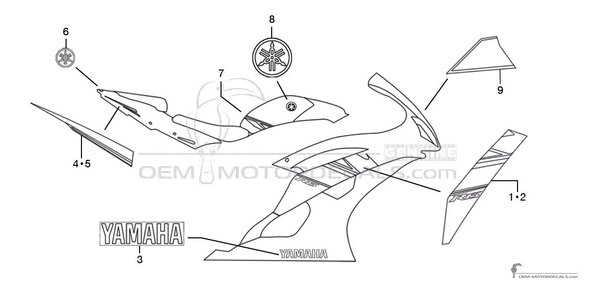 Pegatinas para Yamaha YZF R6 2008 - Azul • Yamaha Pegatinas OEM