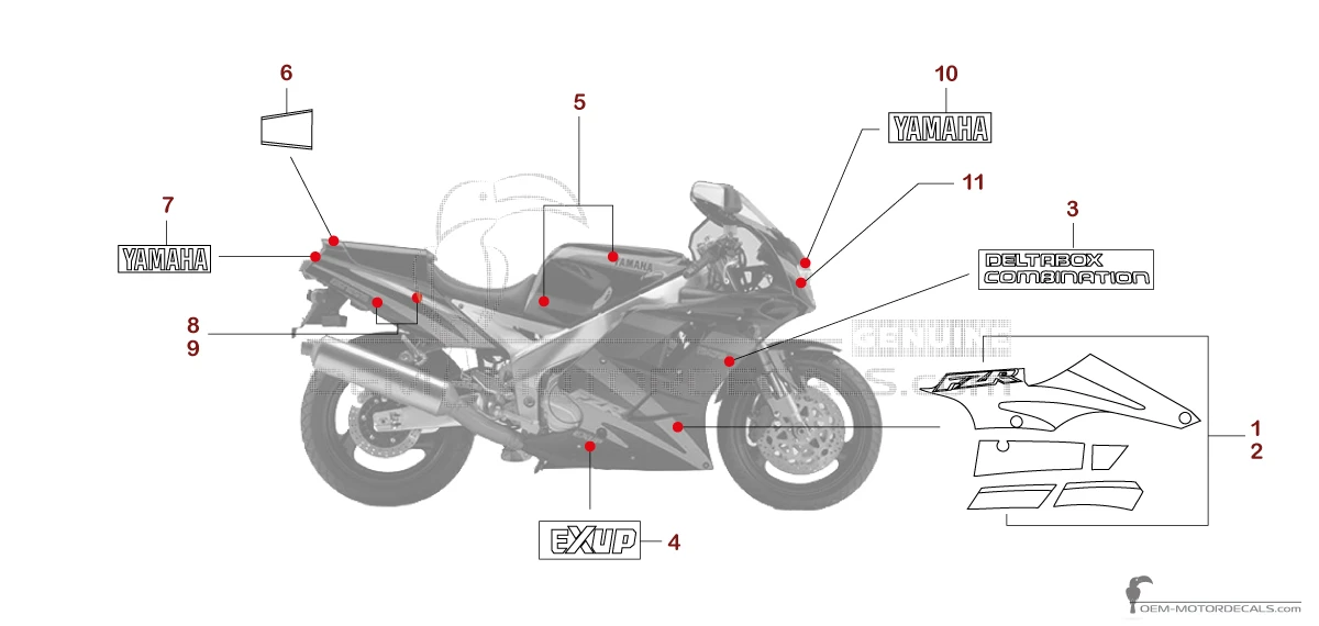 Adesivi per Yamaha FZR1000 1994 - Nero • Yamaha Adesivi OEM