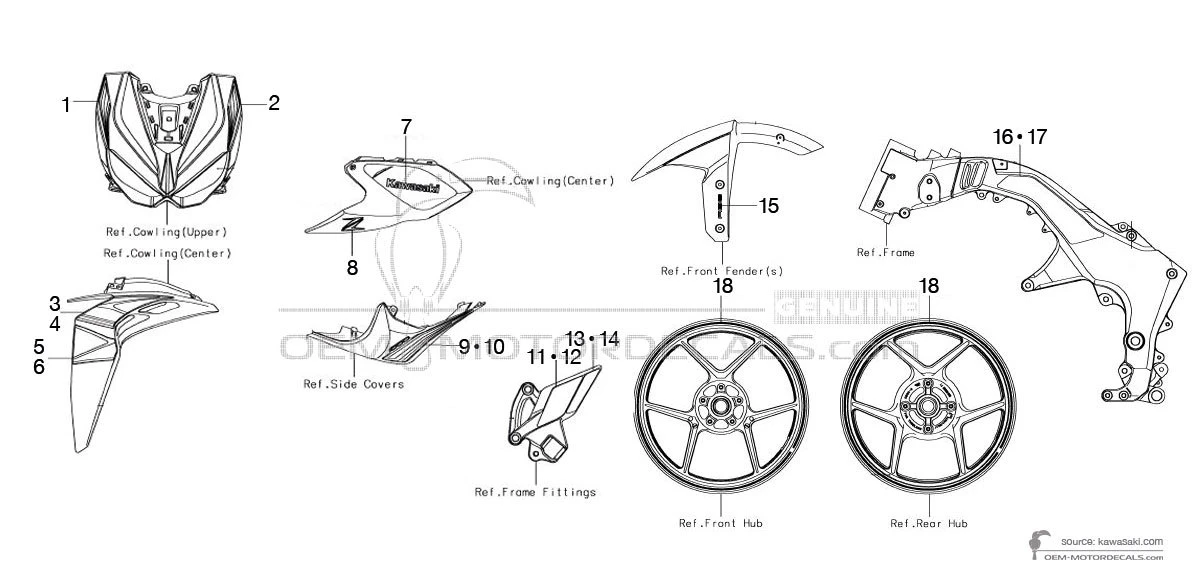 KAWASAKI Decalcomania sul bordo - 560752315 (56075-2315 PATTERN,WHEEL) Questo è un pezzo di ricambio originale prodotto da Kawasaki. Le decalcomanie originali non solo ripristinano l'aspetto di fabbrica della moto, ma fanno anche risparmiare tempo e, cosa interessante, denaro. Questo è ciò che dis..