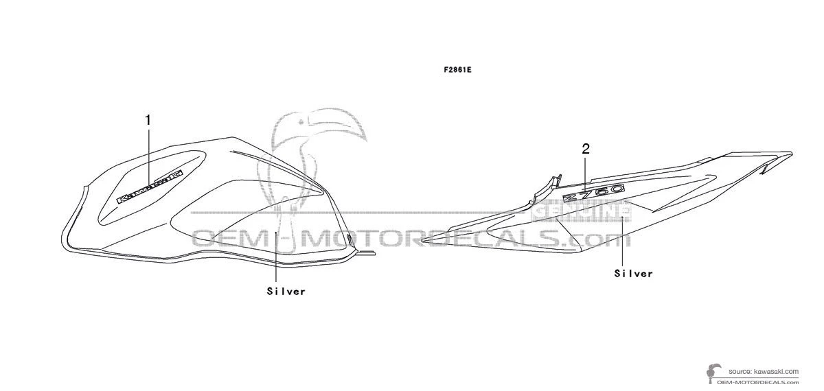 Adesivi per Kawasaki Z750 2006 - Argento • Kawasaki Adesivi OEM