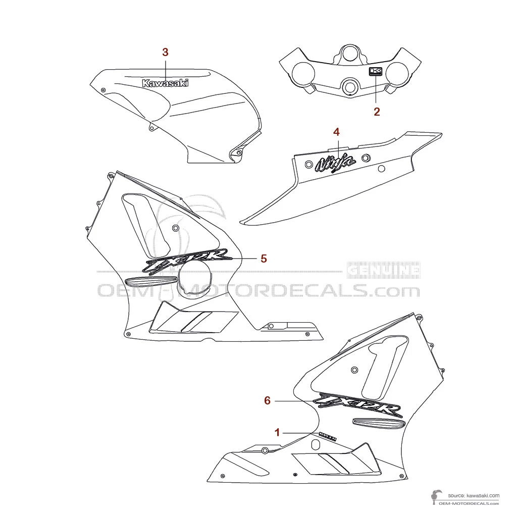 Adesivi per Kawasaki ZX12R 2003 - Nero • Kawasaki Adesivi OEM