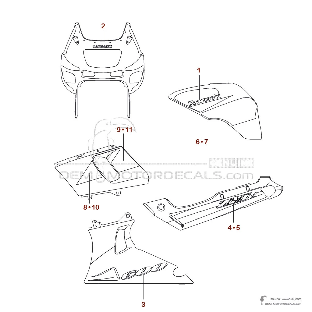Adesivi per Kawasaki ZZR600 1999 - Grigio • Kawasaki Adesivi OEM