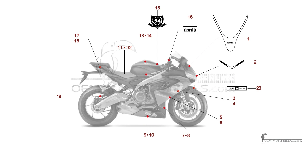 Adesivi per Aprilia RS660 2021 - Rosso • Aprilia Adesivi OEM