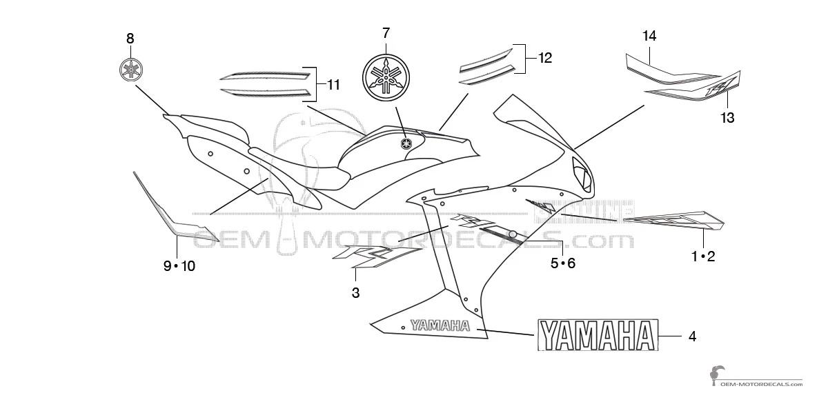 Adesivi per Yamaha YZF R1 2012 - Blu • Yamaha Adesivi OEM